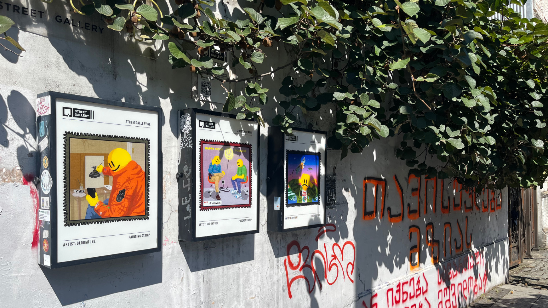 Street Gallery presents an outdoor exhibition of the Secret Stamp Series by Gloomtube, an artist featured in The New York Times and widely recognized for his digital works and NFT projects. Displayed on the Batumi Street Gallery wall, this series of three works - Podcast Stamp, Endgame Stamp, and Painting Stamp continues the artist’s exploration of contemporary life through a mix of irony, humor, and social commentary.